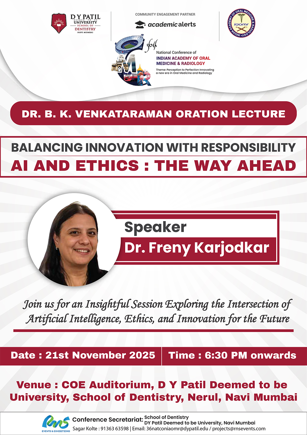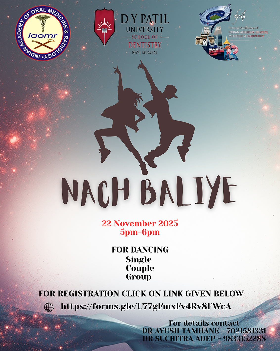 We are honored to welcome you to 36th National Conference of IAOMR, scheduled for November 21st - 23rd, 2025, at the prestigious DY Patil Deemed to be University, School of Dentistry, Navi Mumbai. Join us for an enriching experience alongside esteemed medical professionals. Register now to secure your place!